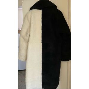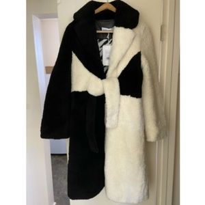 NWT Saks Potts Shearling Wrapis Long Coat B&W
