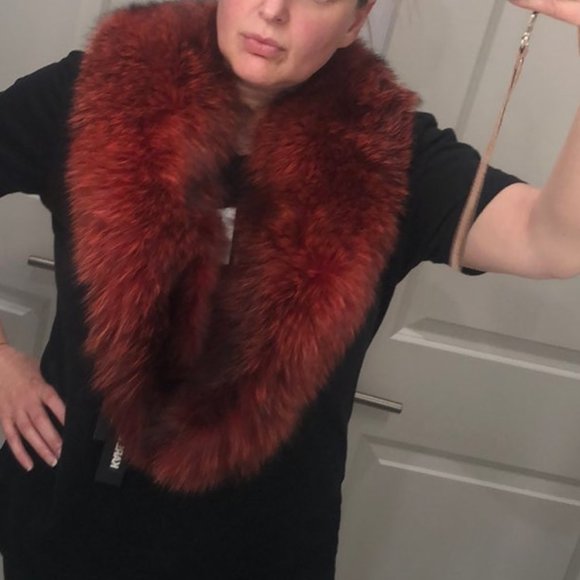 NWT Saks SAGA real FOX Fur RED Scarve Scarf Collar Karl Lagerfeld