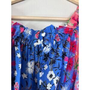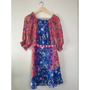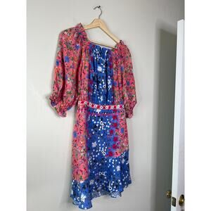 Saloni Grace Foxglove Meadow Off-Shoulder Keyhole Silk Floral Mini Dress. New with tag!