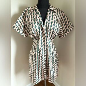 NWT Saloni Riya Ocean Stripe Seashell Print Stretch Cotton Pleated Mini Dress