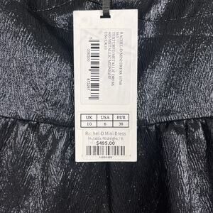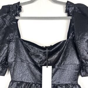 NWT Saloni Size 6 Rachel D Metallic Puff Sleeve Sweetheart Mini A-Line Dress