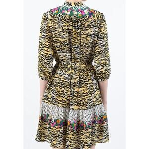 NWT Saloni Tyra Tiger Rosette Silk Multicolor Animal Print Belted Shirt Dress