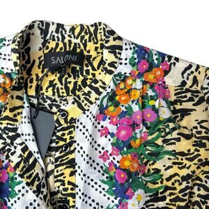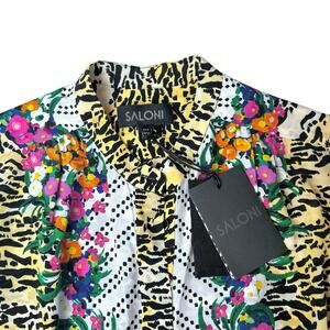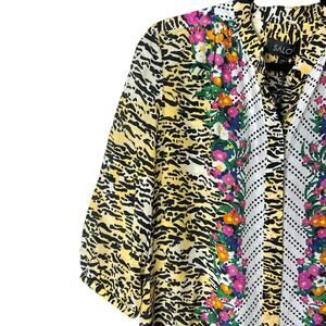 Playful silk Saloni shirtdress with a mix of animal print and floral throughout.