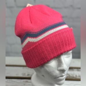Double layer flat knit beanie is made from cotton/acrylic mix fabric.