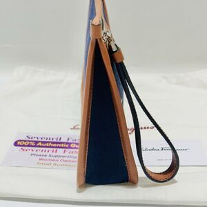 NWT Salvatore Ferragamo Men Navy Canvas Leather Trim Logo Clutch Pouch Bag
