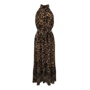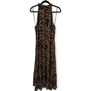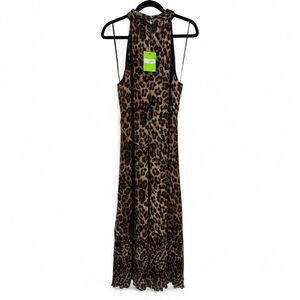 NWT Sam Edelman Brown Black Leopard Print High Neck Sleeveless Maxi Dress Size 14