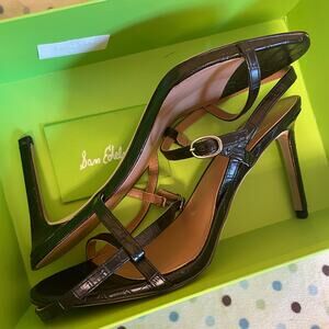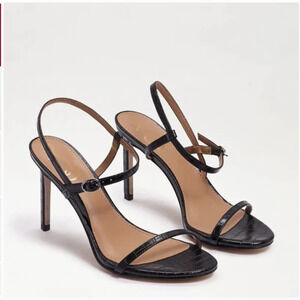NWT Sam Edelman Doran Strappy Heel in black croc embossed leather. Size 9.5