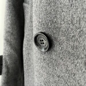 NWT Sam Edelman Double Breasted Wool Blend Twill Coat Lapel Charcoal Grey