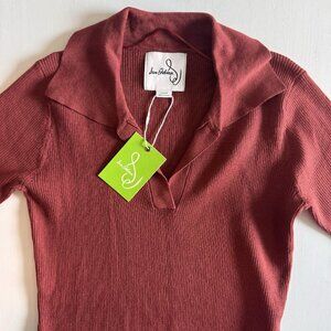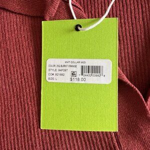 NWT Sam Edelman Dress Size Large Ribbed Collared Midi Sweater $118 Rust Orange