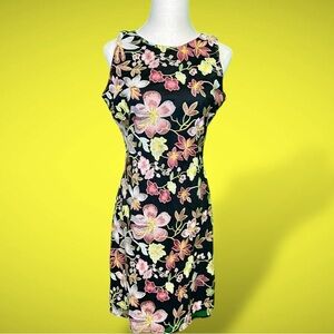 Intricate flower embroidery blooms across this sleek sheath mini that's ideal for your next date night.