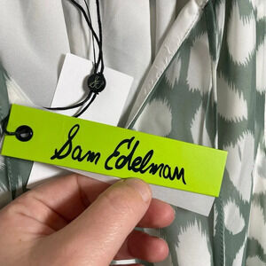 NWT Sam Edelman Sleeveless Ruffle Patterned Midi Dress in Green/White Size 8