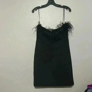 Introducing the NWT Sam Edelman Strapless Feather Trim Dress in size 8, this elegant black dress is crafted with exquisite feathers, adding a touch of glamour to any occasion. Made with attention to detail, this strapless dress combines style and sophistication, making it a perfect choice for those seeking a unique and fashionable look.