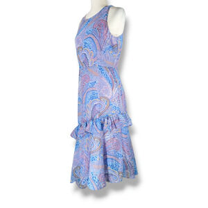 NWT Sam Edelman Summer Paisley Asymmetric Ruffle Midi Dress Sz. 8 Blue Multi