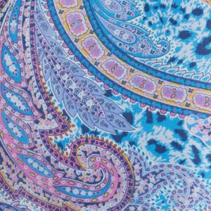 ● An energetic paisley pattern adds plenty of retro sophistication to a sleeveless scoop neck dress complete with a ruffle-embellished asymmetric hem.