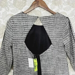 NWT Sam Edelman Tweed Scoop Neck Back Keyhole/ Full Zip Fringe Mini Dress M