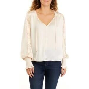 NWT Sam Edelman Varick V-Neck Ruffle Sleeve Satin Blouse Size XL Shifting Sand