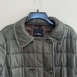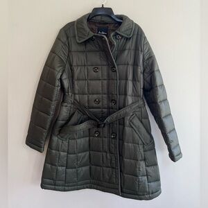NWT Sam Edelman Women's Quilted Faux Fur Lined Trench Coat Olive Green, size L
