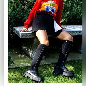 Step out in style with these sleek black lace-up knee-high boots. Perfect for adding an edgy touch to any outfit.