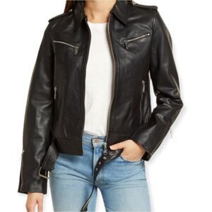 NWT Sam Edelman Black Leather Moto Jacket Size Small
