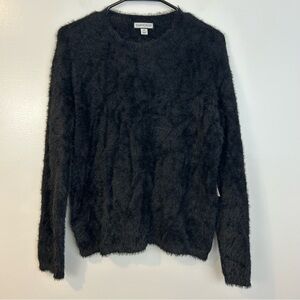 NWT Sam and Jess Black Fuzzy Pullover Crewneck Sweater Size XS