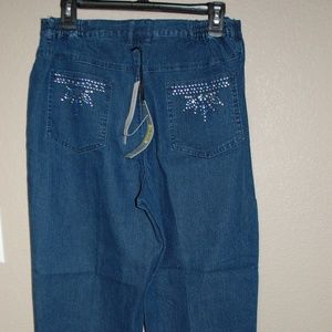NWT Samantha Gray Jeans Decorated Back Pockets Elastic at Waist. Inseam 27".