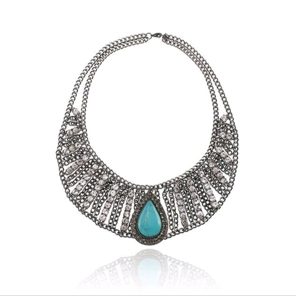 CHANNEL YOUR INNER GODDESS WITH THE TINY SPARKLE NECKLACE. GYPSY GLAMOUR MEETS MODERN STYLE THROUGH CLASHES OF TURQUOISE AND GUNMETAL, CREATING THE PERFECT PIECE THIS SEASON.