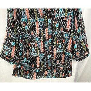 NWT Sami & Jo Blouse Womens 3X Multicolor Ikat Print Button Up Top Southwestern