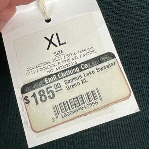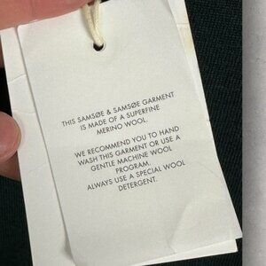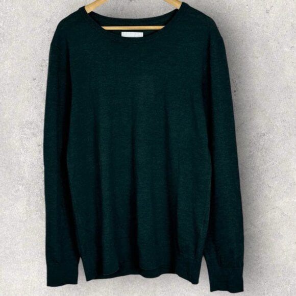 Samsoe Loke Crew Neck Sweater in Pine Green and Men's Size XL. Crew neckline. 100% merino wool. Made in China. Machine washable. Retails for $185 USD. Brand new with tags but note there is a small pindot hole on the back under where the tag was see photos.