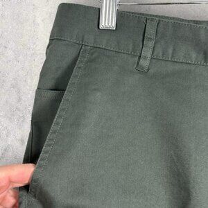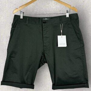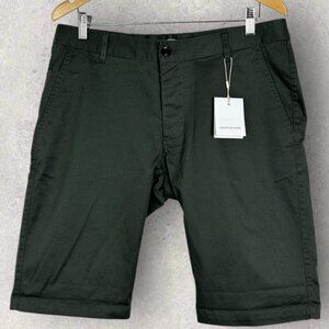 Samsoe Samsoe Balder Shorts in Dark Shadow Gree and Men's Size Large. Button fly. Belt loops. Retails for $134 USD. Model # M16206147. Made in China. Machine washable. 97% cotton and 3% elastane. Brand new with tags! No flaws.