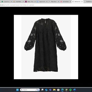 NWT Samsoe Mynthe Oversized Woven Midi Dress. Black. S/M. Includes separate slip dress/Lining to wear underneath. Elegant floral pattern that is quiet, not overdone. Pockets on both sides. NOTE: At purchase, a small black button on the left cuff was missing, but included with purchase is an extra button in the pouch with the tags. EXQUISITE dress that can be worn with everything from combat boots or Ballet flats to heels. Dress is lightweight and is a polyester/nylon blend.