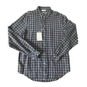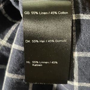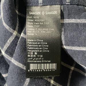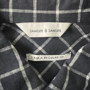 NWT Samsoe Samsoe Liam Button Down Shirt Mens Large Navy Plaid LS Linen Blend