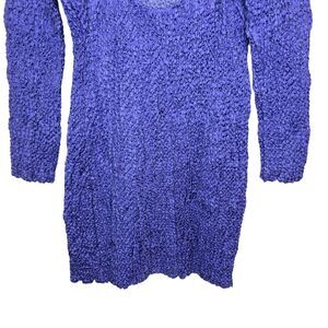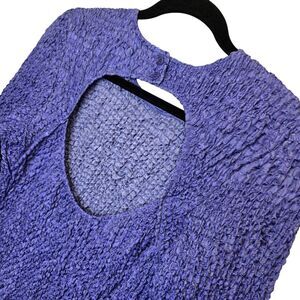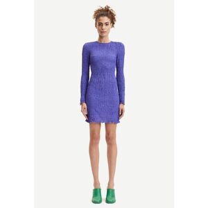 NWT Samsoe Samsoe Womens L Bianca Iris Bloom Crinkle Long Sleeve Mini Dress Purple. Slim fitting mini dress with an open back detail and long sleeves. Crew neckline, button fastening back neck. All over popcorn style fabric detailing. Scalloped trims. Unlined. Color is Iris Bloom. 100% Polyester.