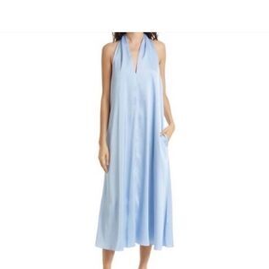 NWT Samsoe Serenity 13096 Cille Satin Dress in Light Blue Size Large