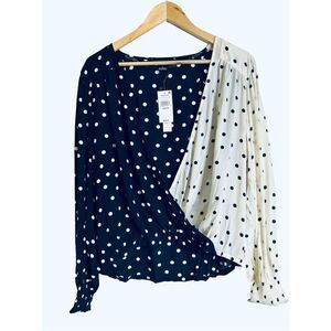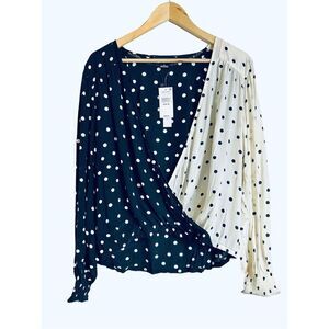 NWT Sanctuary Clothing Womens Dot Wrap Blouse, Black sz Medium