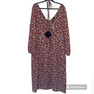 NWT Sanctuary Floral Chiffon Halter Long Sleeve Cut-Out Midi Dres Size 18W