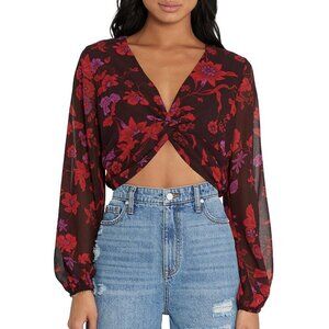 NWT Sanctuary Floral Chiffon Twist Front Crop Top w/ Balloon Sleeves