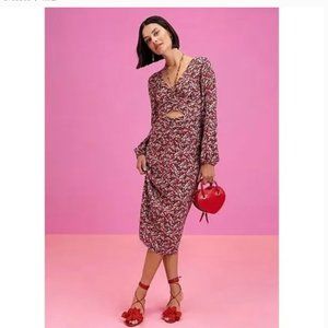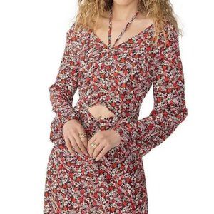 NWT Sanctuary Floral Print Chiffon Long Sleeve Front Cut-Out Midi Dress