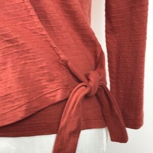 New with tags, Sanctuary Sedona The Collector knit slight stretch faux wrap top, size XS, dark terra cotta color, subtle texture, tie at side, snap at bustline, 100 cotton