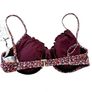 NWT Sanctuary Underwire Purple Micro Garden Shirred Ruffle Bikini Top Size M