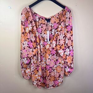 NWT Sanctuary Womens Flowy Seashore Outdoor Floral Blouse Size 2X Work Career