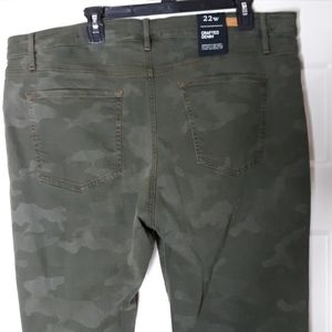 Green cameo, crafted denim. Size 22W (jr. Size, about 42" ).Front and back pockets