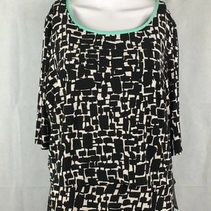 Good Day! I am selling: NWT Sandra Darren Dress Womens Sz 16 Black White Patterned Stretch Short Sleeve