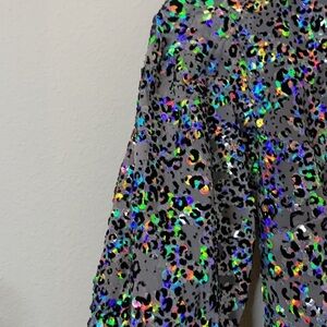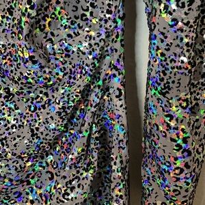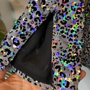 Allover iridescent sequins with velvet animal print