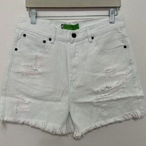 NWT Sandrine Rose distressed high rise denim shorts in excellent condition.