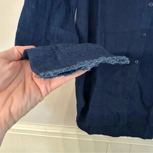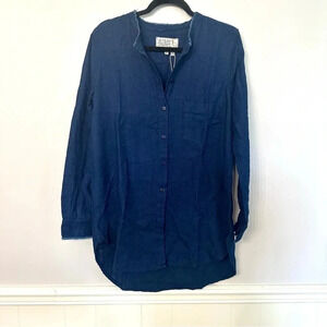 NWT Sandrine Rose x Free People Long Sleeve Frayed Collarless Denim Shirt Size S