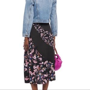 NWT Sandro Kylie wrap-effect floral-print crepe de chine skirt