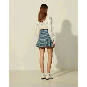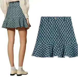 NWT Sandro Women's Blue Navy Logo Ruffle Paulina Mini Skirt Size Small 2 4