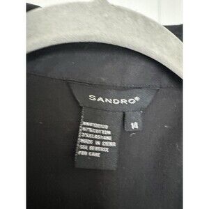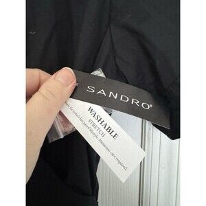 This is a new with tags Sandro women's wrap black dress in size 14. Made of cotton, it features a V-neckline and falls at a midi length. The dress is suitable for summer, fall, and spring seasons, offering a stylish and comfortable option for women who prefer a solid pattern and regular size type.