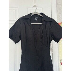 NWT Sandro Women’s Wrap Black Dress Size 14 Cotton V Neck Midi