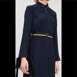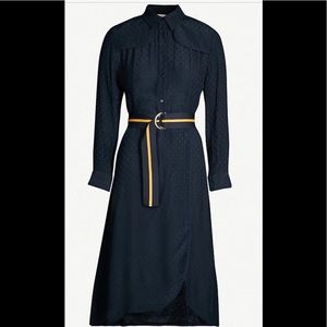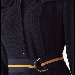 NWT Sandro contrast belt woven dress, If you’re looking for something along the lines of a shirt dress but with a bit more structure and a feminine flair, Sandro has you covered. This dress features a classic collar and buttons to the front, cinched at the wait with a contrast stripe detail belt, whilst the skirt flares out in an A-line silhouette. Pair it with leather mules and a cross-body bag for daily city chic style.